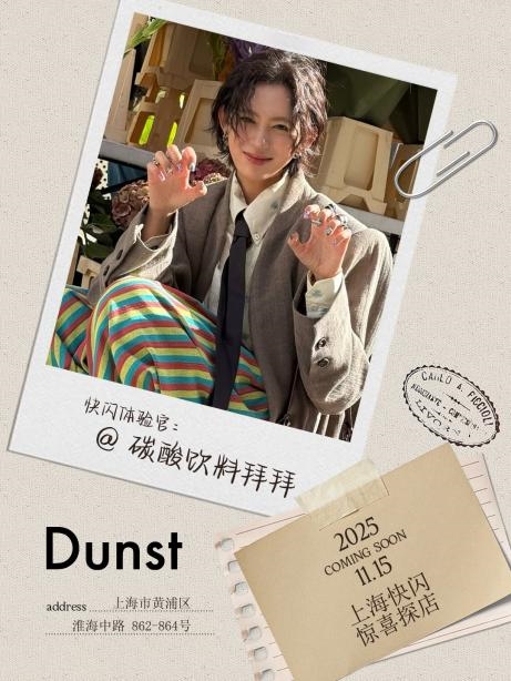 从2025年11月15日起,欢迎亲临上海黄浦区淮海中路862-864号,步入Dunst的秋冬世界,共同探索时尚与日常相遇的无限可能。更多喜讯,请关注品牌官方小红书@Dunst,以及官方微博@Dunst_official。
