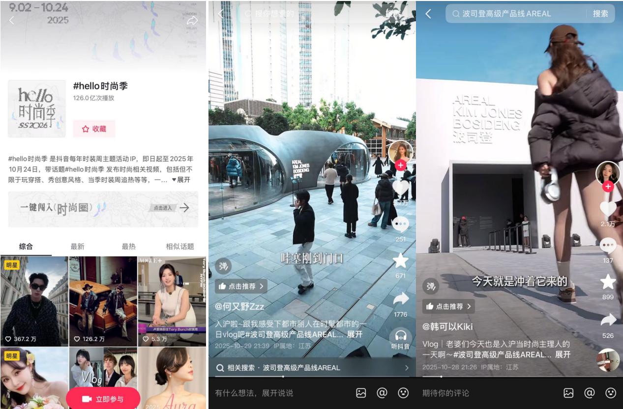 在抖音平台上,明星与时尚内容天然具备强互动、高共鸣属性。「HELLO 时尚季」为波司登定制的宣发路径清晰明确:先聚焦粉丝圈层与时尚界开展定向精耕,再逐步辐射更广泛人群。这一策略不仅让新品实现重磅亮相,更助力品牌快速沉淀下第一波扎实口碑。随后,探店、测评、穿搭展示、时尚点评等更多垂类博主加入共创行列,为新品向更广泛圈层的渗透注入强劲动力。