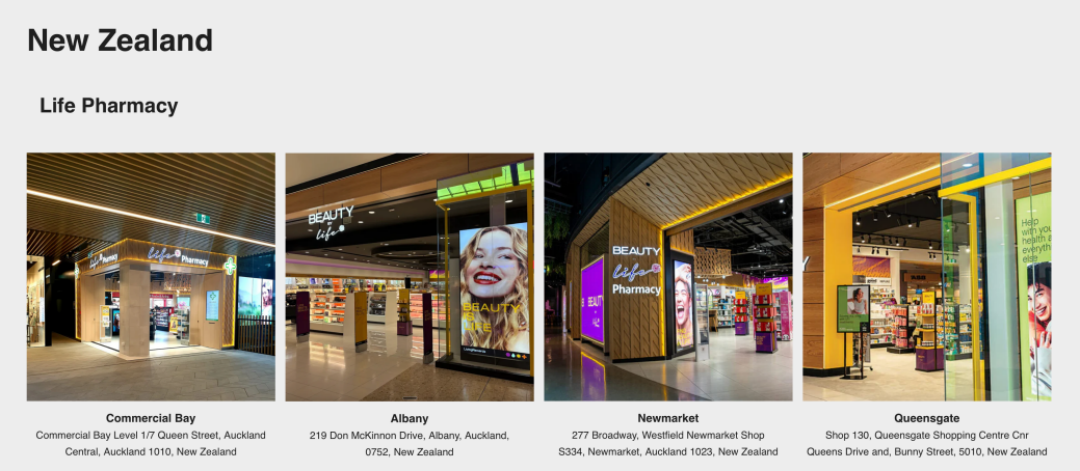 BeauEver新西兰线下部分合作药房