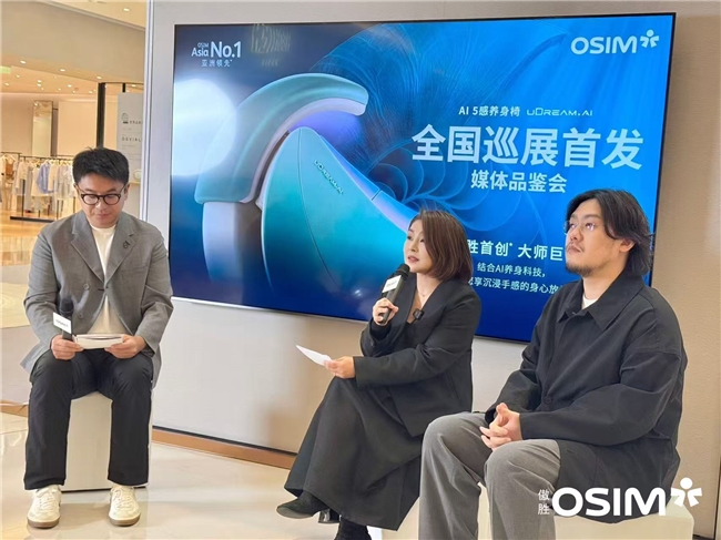 2026年4月2日,养身科技倡导者、Asia No.1*亚洲领先高端按摩椅品牌OSIM傲胜,于上海万象城举办了新品uDream AI (中文名:AI 5感养身椅)全国巡展首发媒体品鉴会。OSIM傲胜(中国)华东区总经理暨总部管理林晓慧女士、OSIM傲胜(中国)品牌管理部负责人蔡怡平先生、上海万象城各位领导出席本次活动,与多家媒体共同探讨健康科技从功能走向情感陪伴的全维升级路径,共同见证uDream AI以世界大师技艺、五感沉浸体验与AI养身科技,为用户带来“身心好、压力少、睡更饱”的健康生活新范式。