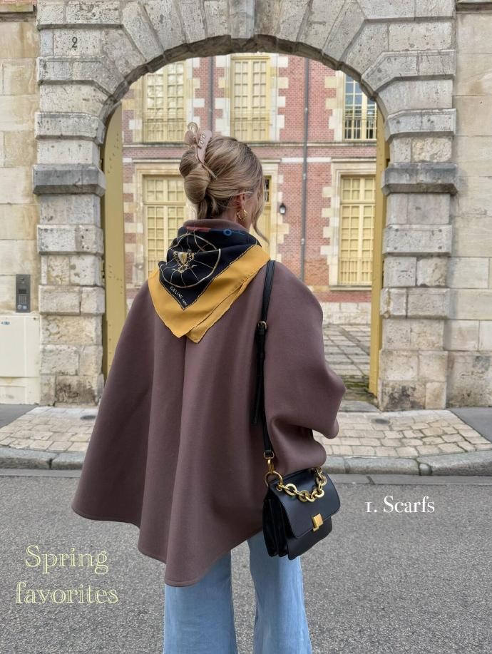 今天给大家介绍的是来自法国ins时尚博主Jeanne Andreaa,始终是通勤风格的标杆式存在,她的穿搭从不是浮夸的设计堆砌,而是用恰到好处的廓形与色彩,把秋冬的厚重感转化为轻盈的优雅。她的春日穿搭合集里,第一条造型便是以丝巾点睛,软糯的棕褐色廓形外套搭配浅蓝牛仔裤,颈间的黄调丝巾打破沉闷,黑色链条小包点缀细节,完美诠释了 “配饰是法式灵魂” 的真谛,每一处细节都透着不刻意的精致。