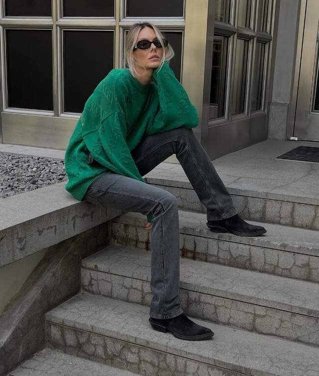 黑色属于万能的基础色,搭配绿色当然也是可以的。绿色可以打破大面积黑色带来的沉闷感,使整体look更显活泼。饱和度低的绿色如墨绿色、军绿色等更容易穿出高级感,还有着一股酷帅的中性风,低调沉稳又端庄大气。最重要的是黑色还显瘦!