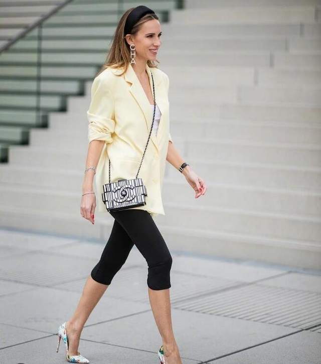 西装不只是只能穿黑白色,尝试一下柠檬黄的西装,会让你有意外的惊喜,十分休闲时尚,更不会失掉黑色西装的那份帅气、优雅。西装一种给人一种严肃刻板的印象,没想到跟单车裤搭配起来还有这样一种视觉效果。