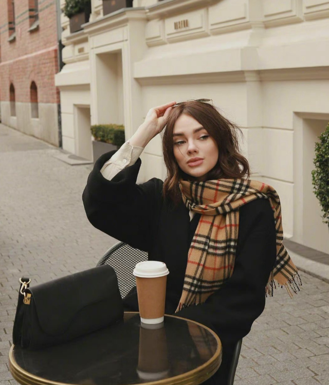 可是黑色毛呢大衣款式比较单调,颜色也都是黑色,整个人都被黑色毛呢大衣包裹住,除了黑,啥也看不出来,导致浑身散发出压抑的气息。我们只需要搭配一条颜色不一样的围巾,不光能够增加保暖效果,还可以将这种压抑的气息完全瓦解。