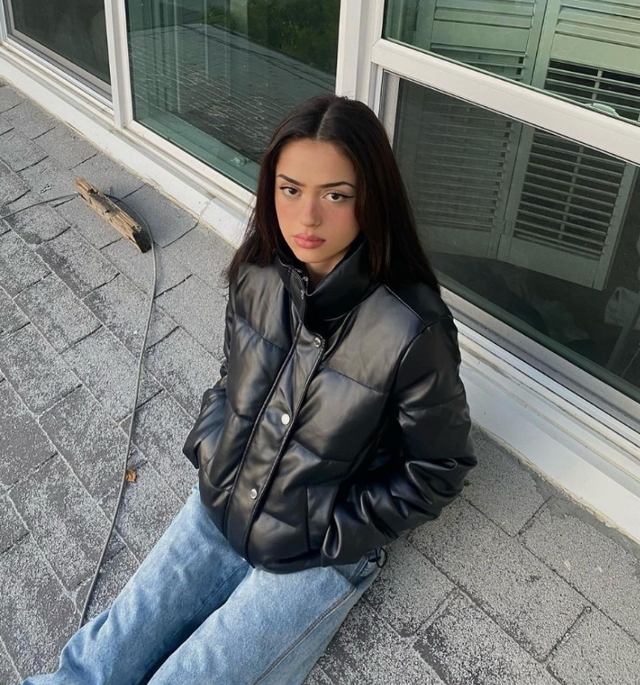 黑色面包服搭配牛仔裤,休闲又百搭。