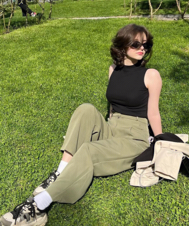 黑色背心搭配军绿色裤。这一套上身酷酷的,穿上它你绝对是这条gai上最靓的崽