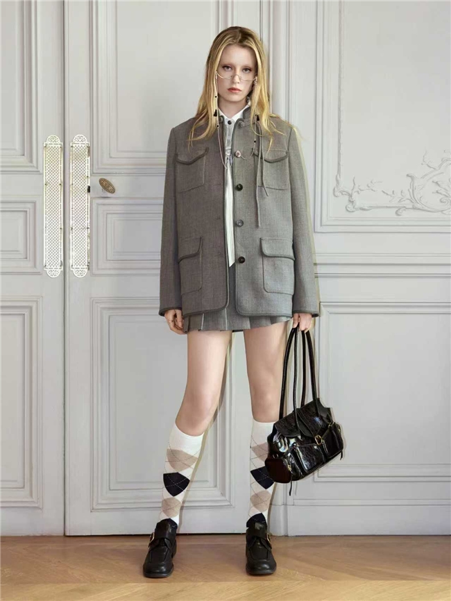 20周年章仔图案、条纹、菱格等标志性符号焕现当下解读,亦象征着与往昔的联结与传承,和服装的形态、色彩创意融合,随机却有序地出现在衣袖、肩部、衣身之上,智性的书卷气与新锐的活力并行,勾勒鲜活个性叙事,为都市职场通勤增添更多逸趣。