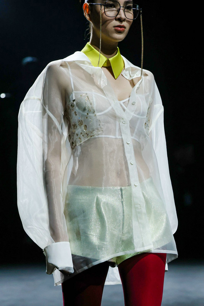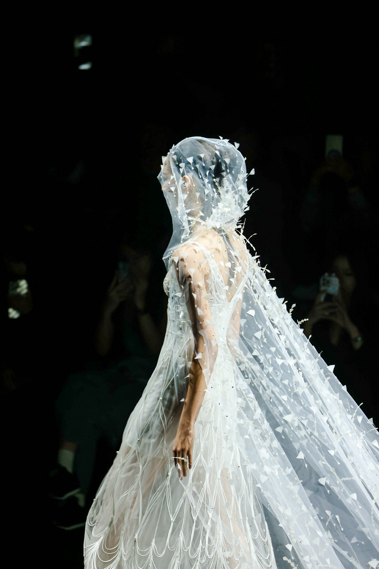 “我们一直在探索矛盾的美感,建筑感的几何线条同样也可以与轻柔的薄纱冲突对比的美学。”