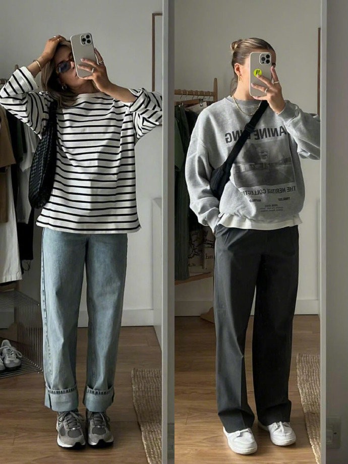Charlotte Olivia 对基础款的运用堪称 “教科书级别”,她从不嫌弃基础款的 “普通”,反而能挖掘出每一件基础单品的适配潜力。比如最常见的白色衬衫,在她的搭配里能变幻出多种风格:搭配高腰直筒牛仔裤和乐福鞋,是利落的通勤 look,衬衫领口随意解开两颗扣子,又多了几分松弛感;若将衬衫下摆塞进高腰半身裙,外搭一件短款针织开衫,脚下换上皮质短靴,又变成适合秋日约会的温柔搭配。她钟爱的黑色针织衫更是百搭利器,单穿时搭配阔腿西装裤,是简约大气的职场风;叠穿在条纹 T 恤外面,下身配运动 leggings 和老爹鞋,又成了休闲减龄的周末穿搭。在她看来,基础款不是 “无聊” 的代名词,而是穿搭的 “万能积木”,只要掌握搭配逻辑,就能用有限的单品组合出无限可能,尤其适合不想在穿搭上花费过多时间,却又想保持整洁时髦的普通人。