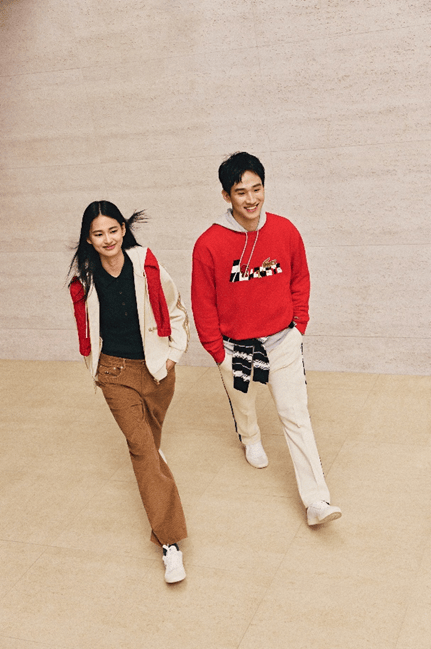 该系列涵盖多款重点新春单品,包括男士夹克、连帽卫衣、Polo 衫、条纹 Tee,以及女士质感针织衫、运动套装等。其中,夹克外套以胸口L 型图案及金属拉链装饰呼应“马行棋步”主题;撞色条纹长款Tee 符合更多穿着场景,展示极有辨识度的新年风格;女士连帽衫采用侧边装饰织带与立体马形徽标,展现活力与优雅并存的节日造型。