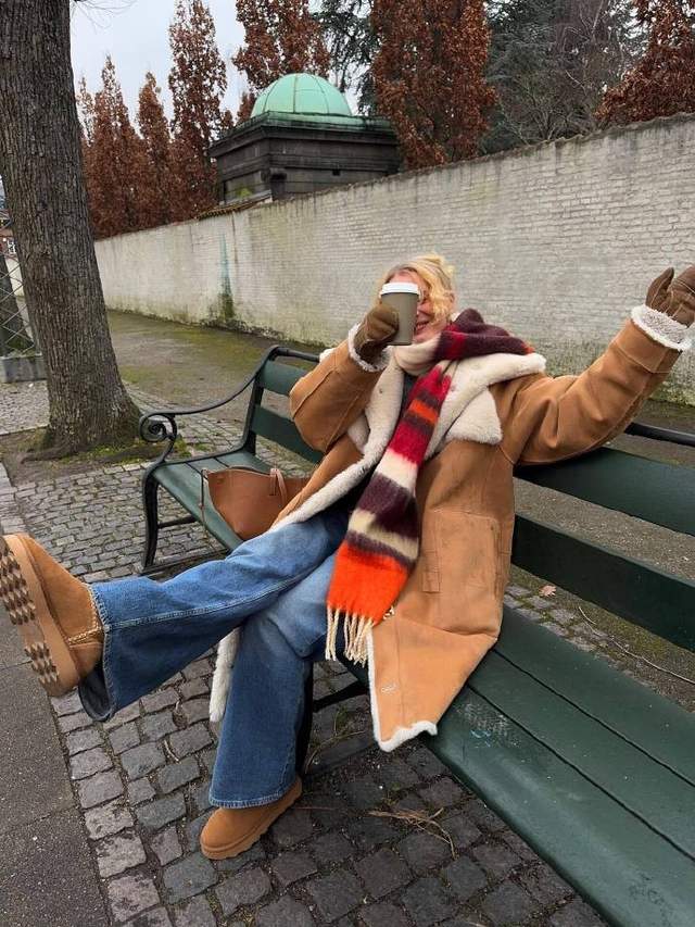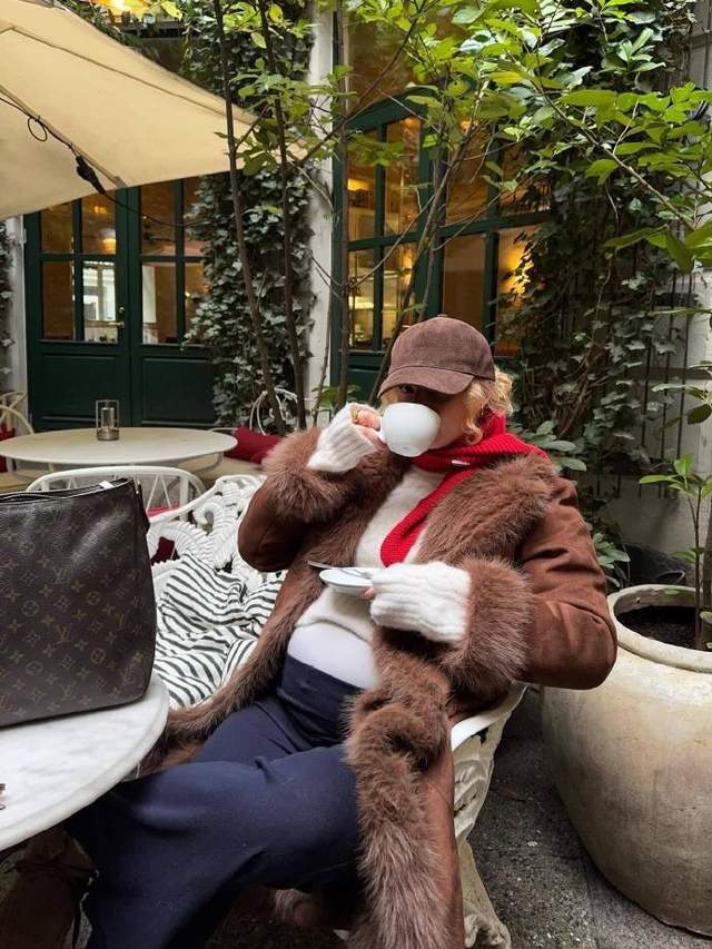 具体到春节穿搭实践中,Mathilde的搭配逻辑简单易懂,普通人照搬也不会出错。比如用一件燕麦色廓形针织衫,搭配一条高腰直筒牛仔裤,脚踩一双白色毛绒乐福鞋,外搭一件浅灰色长款羊毛大衣,简约的组合却藏着细节巧思——针织衫的慵懒感中和了大衣的利落,直筒裤修饰腿型的同时保证活动自如,毛绒鞋则为整体造型增添了节日的软糯感。再比如,用浅驼色高领内搭搭配米白色灯芯绒阔腿裤,外搭一件黑色短款羽绒服,配饰选择一条细金属项链和一顶米色针织帽,既抵御了春节的寒意,又通过材质的碰撞(灯芯绒的复古与羽绒服的轻盈)营造出层次感,即便没有红色元素,也能凭借精致的细节传递出节日的仪式感。
