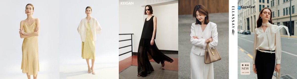 “流光”篇章则集中展示醋酸与真丝面料的应用,突出垂感与光泽度。朗姿白色外套的立领盘扣设计融合东方美学,增添含蓄高级感,搭配法式吊带连衣裙,轻松打造柔美气质;开间裙裤的廓形设计,飘逸又自在;歌力思捏褶连衣裙以层次感呈现精致得体的都市女性形象;珂莱蒂尔雪纺衬衫的飘带设计点缀法式浪漫,塑造温柔知性风格。