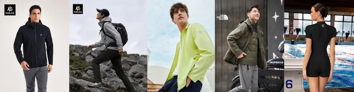 “无界”篇章以科技机能面料打造实用型服饰。凯乐石软壳衣采用防风防泼水面料,搭配耐磨高弹机能面料打造的软壳裤,以专业防护应对徒步与登山需求;纳维凯尔防晒衣的简约廓形与隐藏式收纳设计,让春夏季防晒也能兼顾时尚美感;北面三合一冲锋衣保暖内胆可拆卸,灵活应对复杂天气;范德安连体竞速泳衣的高密度抗氯氨纶面料可减少水中阻力,提升游泳潜水运动效率。
