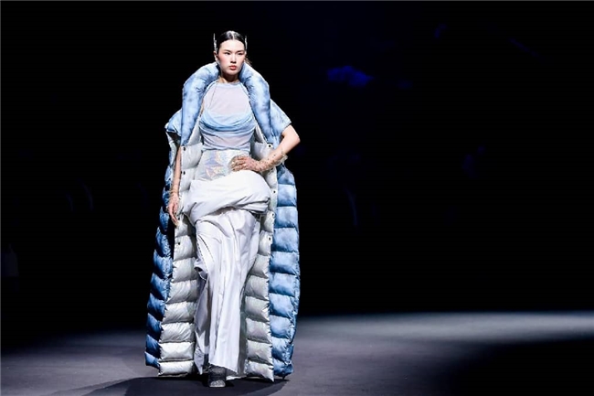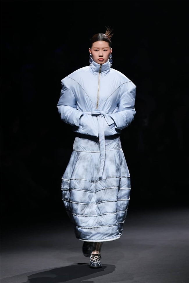 秀演特邀中国十佳时装设计师孙德春,以本季流行趋势的核心概念“聚势”为灵感主旨,紧扣“雕琢、流淌、藏蕴、光影”四大主题构建系列服装作品,将“盛泽织造”的高端面料与前沿的设计巧思深度结合,在经纬交织间,诠释科技、时尚、绿色、文化的共融之美,在传承与创新间,尽显绸都美学新生。