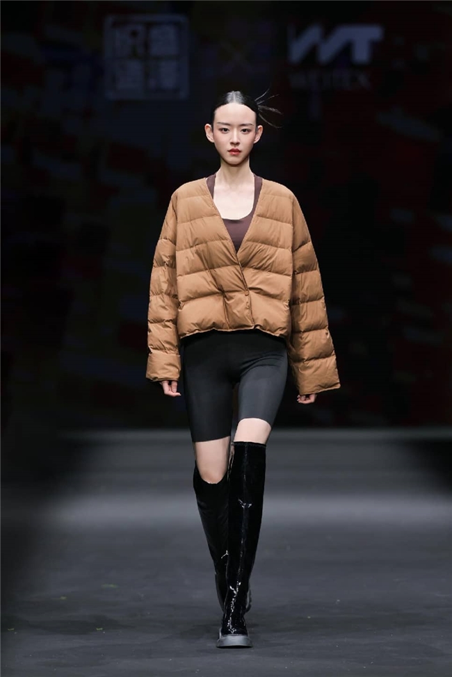 维泰丝绸以“藏蕴”主题为核,基于自然共生的可持续时尚视角,以混搭的潮流逻辑和创新织物打造时尚功能系列。面料甄选再生尼龙、生物基纤维等可持续材质,经环保染整工艺和高密度织造,实现独特的肌理和柔软的触感,并从外观与功能性上,赋予穿着者安全感;同时,运用提花工艺打造精致化改良的经典格纹,完美契合“经典新生”的设计语境。一众复古轻科技风面料兼具高强耐磨、弹性、轻量、保暖等特性,真正实现时尚与功能的双向奔赴。色彩通过米稠色、香料红棕等具有长期价值的大地怀旧色系,令服装与自然脉络深度交织,在温暖、柔和的氛围感中,以时尚表达诠释优雅自由的新生价值。