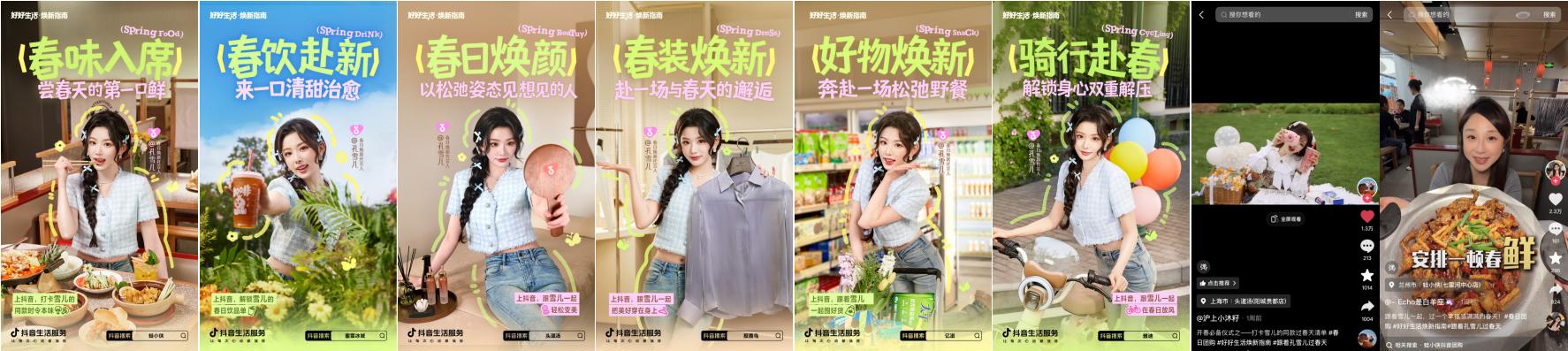 孔雪儿在不同的春日焕新场景中,分别为大家推荐了不同的焕新体验。蛙小侠、蜜雪冰城、头道汤、报喜鸟、亿滋、雅迪等品牌也同步推出对应场景的春季新品和体验,让更多人在抖音遇见春日美好。抖音平台 #跟着孔雪儿过春天 话题跻身热门,相关内容曝光超千万,吸引大量用户跟随孔雪儿打卡同款春日瞬间。一口春鲜、一次变美、一段踏青,让「好好生活 春日焕新」成为春日潮流。