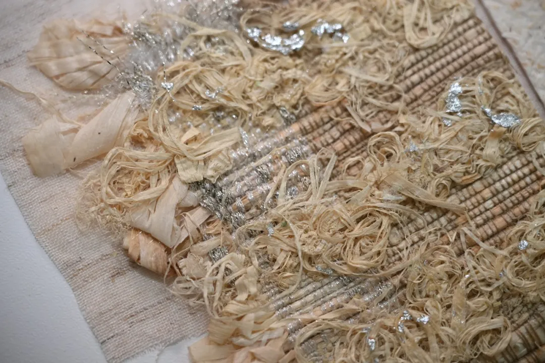 面对非遗传承与可持续发展,设计师展现了深厚的在地情怀与创新智慧,或秉持“慢时尚”理念探索民族工艺的现代转化,或利用废料再造面料诠释东方雅韵,同时将环保理念贯穿其中。他们利用回收废弃锡纸结合非遗工艺制作装饰,传递生态守护的愿景。此外,还有作品将AI数字美学与东方哲学思想结合,以服装为画布捕捉情绪,展现了极具未来感的艺术表达。