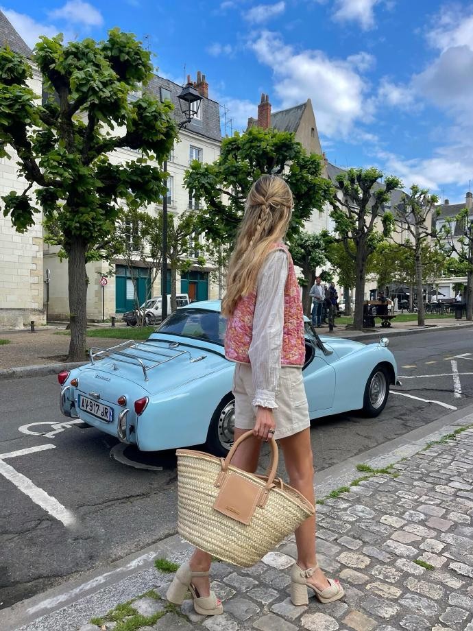 除了色彩与风格的巧思,jeanne_andreaa 的穿搭更藏着满满的生活氛围感,完美适配法式日常的每一个场景。从逛花市时的白色上衣搭配印花长裙,到逛书店时的格纹衬衫配牛仔裤,再到街头出街时的绗缝外套配半裙,她总能根据场景切换风格,却始终保持着松弛自在的状态。她擅长用细节点睛造型,草编包、丝巾、发箍、玛丽珍鞋,每一个小配饰都能让基础款瞬间升级,同时又不会显得刻意用力。她的穿搭没有复杂的公式,却处处透着法式生活的精致与随性,无论是通勤、出游还是日常闲逛,都能找到可直接照搬的范本,让普通人也能轻松 get 法式松弛感。